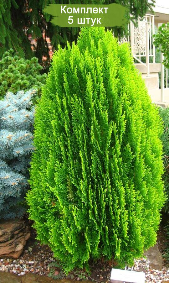 Комплект туй Восточных, размером от 20 до 40 см, предлагается в количестве 5 штук по цене 4. Эти деревья могут достигать в высоту до 18 метров, хотя чаще встречаются экземпляры высотой до 10 метров. Крона туи обширна, её диаметр может равняться 11 метрам. Кора дерева имеет коричневый оттенок, тогда как ветви могут быть окрашены в желтые или красные цвета.