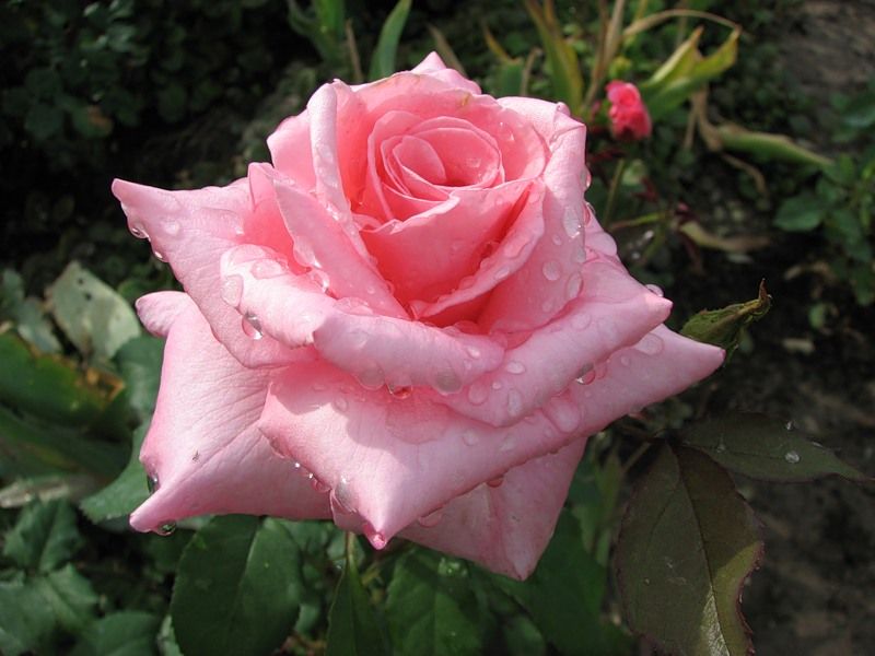 Саженец чайно-гибридной розы "Эйфелева башня" (Eiffel Tower) привлекает внимание своими длинными и элегантными бутонами. Они обычно появляются по одному на концах высоких прямостоячих побегов, что визуально удлиняет цветок. Распустившиеся цветки также впечатляют: они имеют нежный сиренево-розовый оттенок с более темной оборотной стороной лепестков, который со временем выгорает до мягкого розового. Этот сорт особенно популярен для срезки благодаря своей красоте и аромату, который многие считают одним из самых сладких и насыщенных среди чайно-гибридных роз.